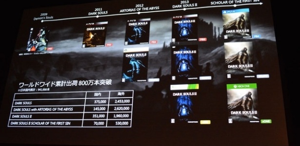 De acordo com um gráfico apresentado pela empresa, o primeiro "Dark Souls" vendeu 2,8 milhões até hoje, enquanto a "Prepare to Die Edition" - versão com DLCs lançada para PC e consoles - chegou a 2,7 milhões de vendas.
